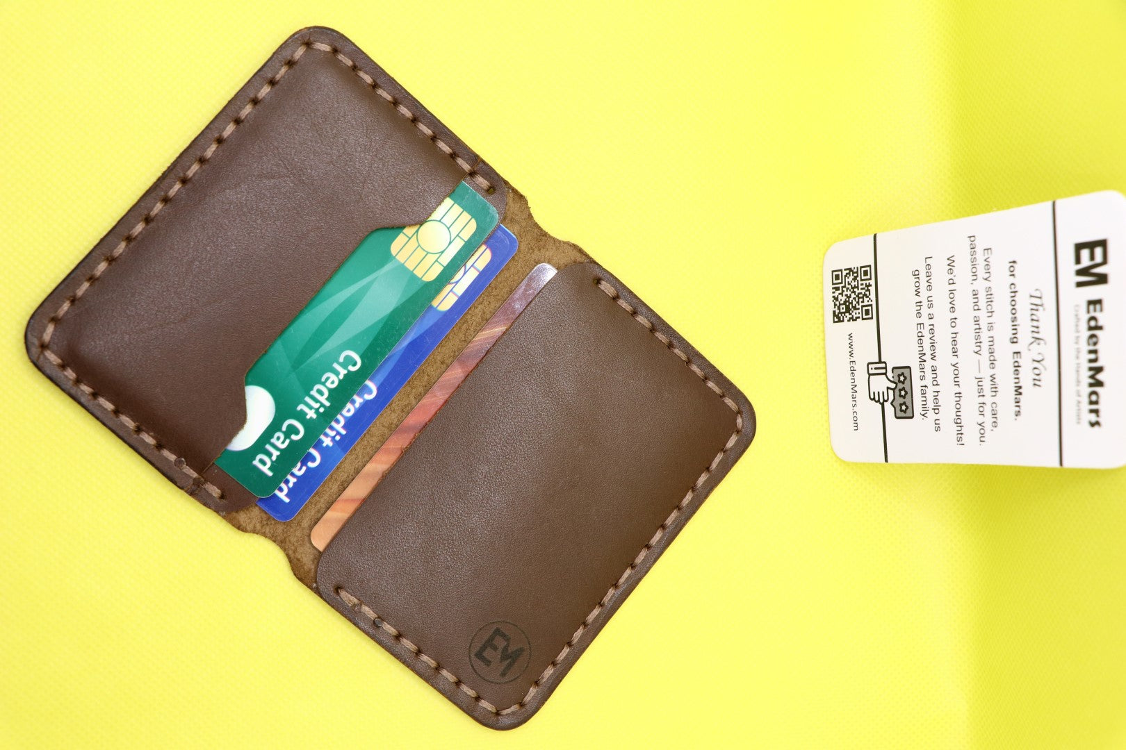 A minimalist wallet for those who prefer elegance in simplicity. Handcrafted from premium top-grain leather, this slim card wallet is designed to keep your essentials organized without bulk.